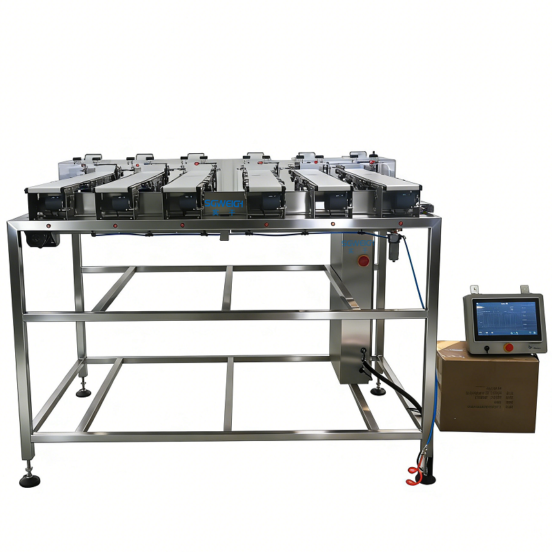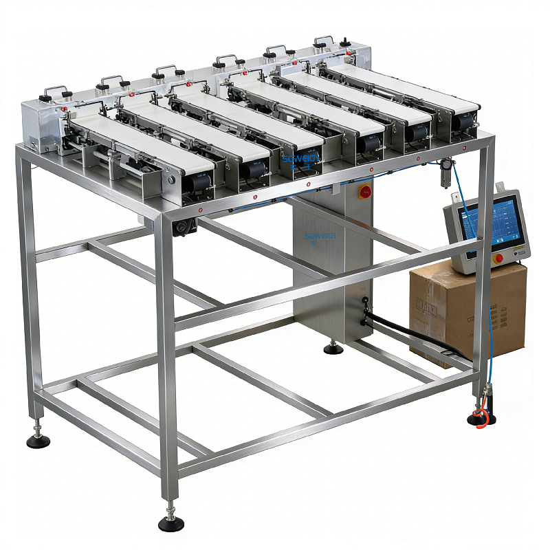 The Multi-Line Large Checkweigher is an online weight detection device specifically designed for high-speed, multi-row production lines. It is suitable for packaging and dispensing processes requiring high capacity, high precision, and continuous automation.